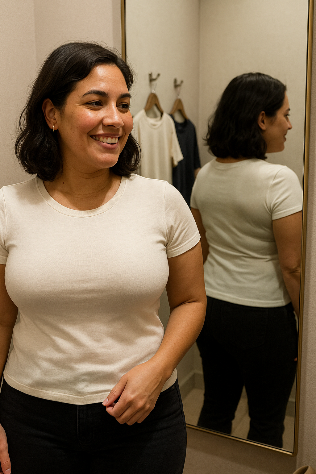 The ultimate test—and it passes. Stays completely smooth under your fitted tops, white shirts, and thin fabrics. The lines that bothered you? Gone.