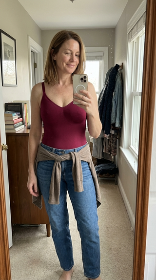 The Sculpting Bodysuit delivers firm but comfortable compression exactly where you need it—tummy, waist, and back—without feeling restrictive. Seamless construction disappears under clothing, while the snap closure means you don't have to undress completely in the bathroom.